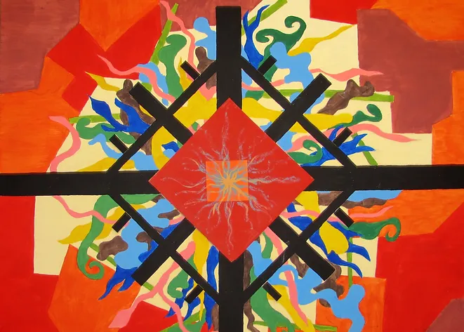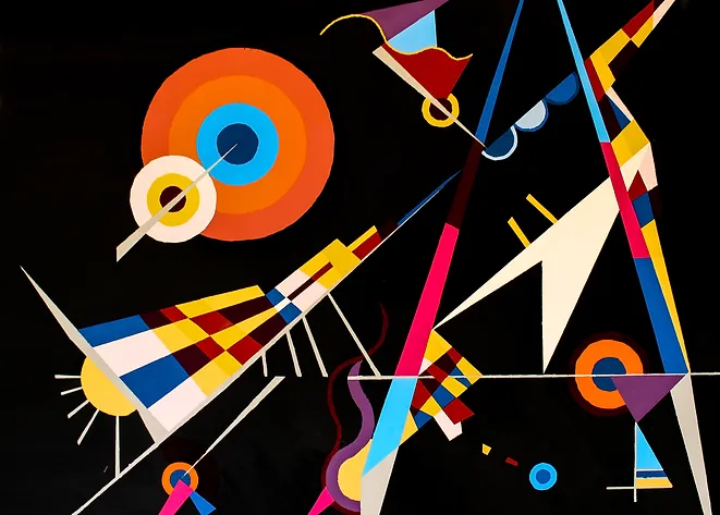 Composición cubista realizada en tonalidades cálidas y frías equilibradas, inspiradas en el amanecer y anochecer.